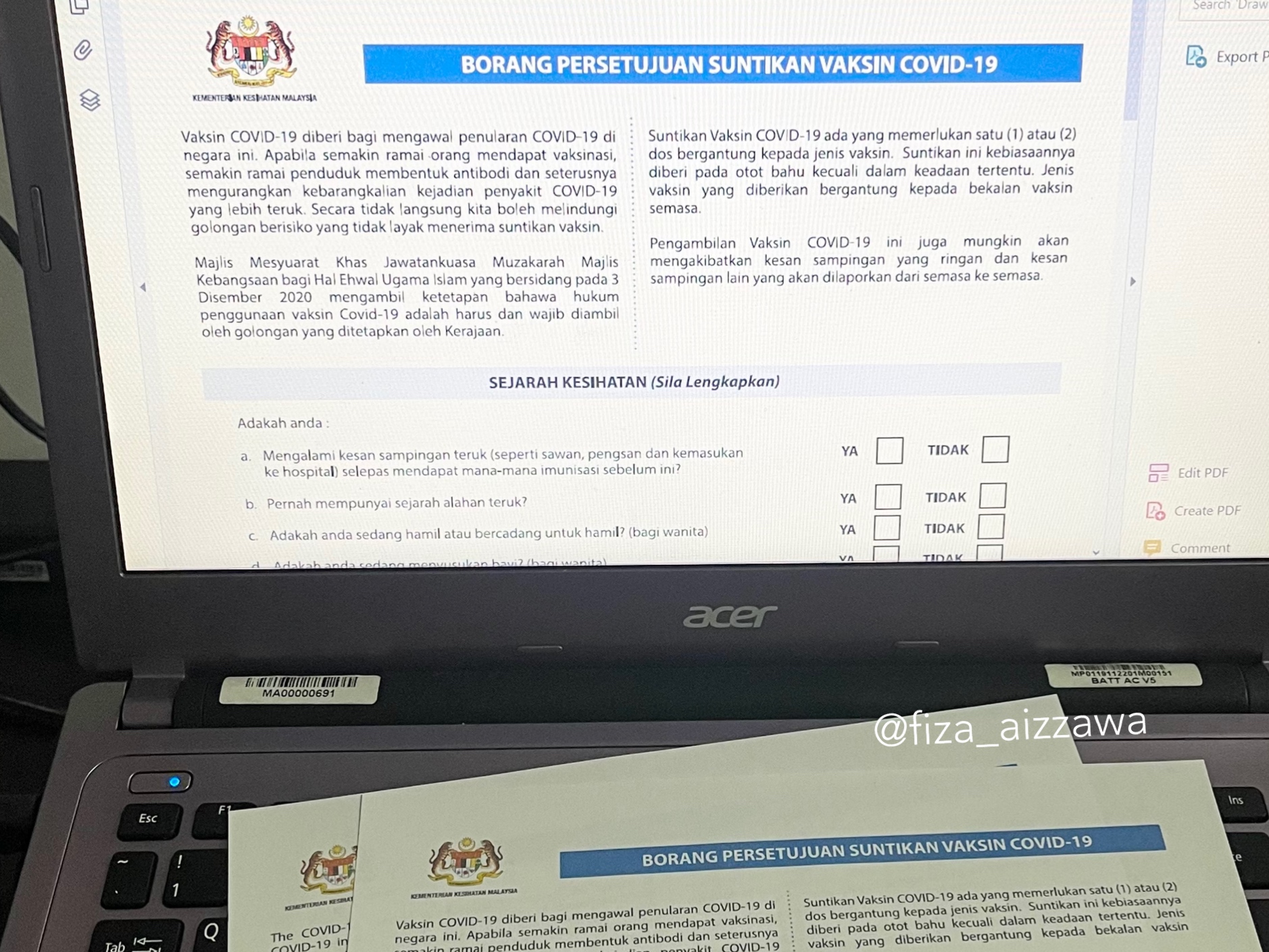 Assalamualaikum. Alhamdulillah 2 hari lepas Fiza telah pun mendapatkan suntikan vaksin dos kedua. Sebab nak menulis nie, Fiza nak bagitahu lah vaksin apa yang Fiza dapat. Sebab ada yang duk viral, tak tanya pun vaksin apa, sibuk nak bagitahu.